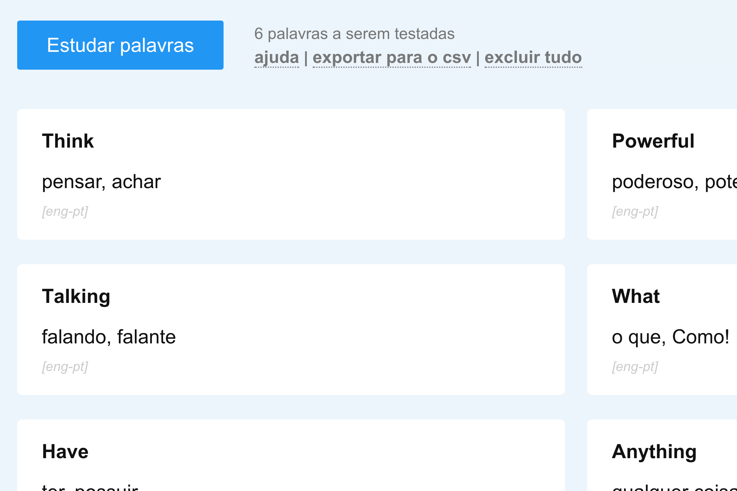 Teste o seu vocabulário usando nosso sistema de repetição com espaços especial.