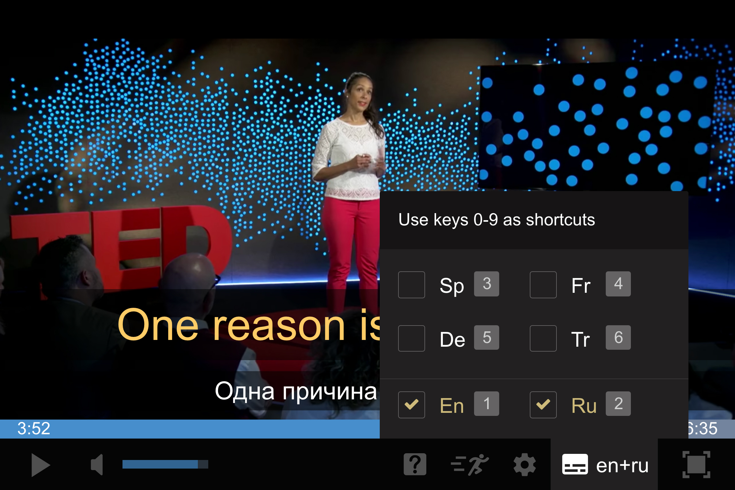 Смотрите видео с несколькими субтитрами одновременно.
