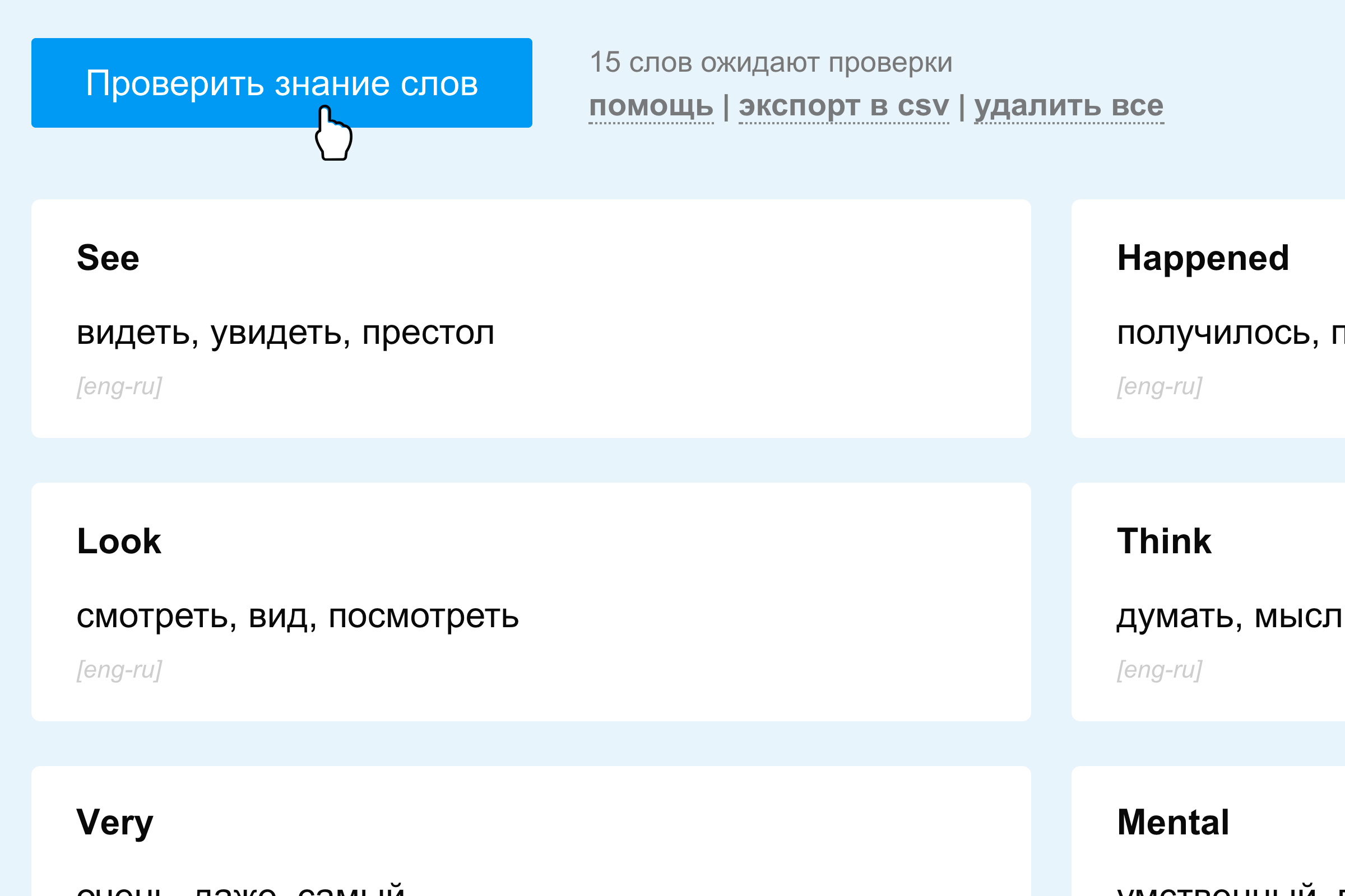 Тренируйте знание слов при помощи нашей специальной системы интервальных повторений.